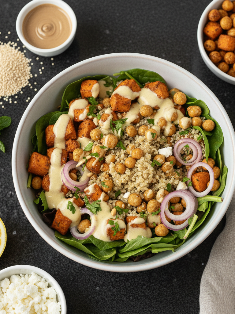 This recipe is naturally vegan, gluten-free, and dairy-free (if you skip the feta), making it the ultimate healthy dinner or lunch prep. Forget the sad desk lunch this power bowl is designed for energy, satisfaction, and serious flavor. It truly hits every corner: healthy, quick, and absolutely delicious. Let’s dive into how to make this masterpiece a weekly staple!